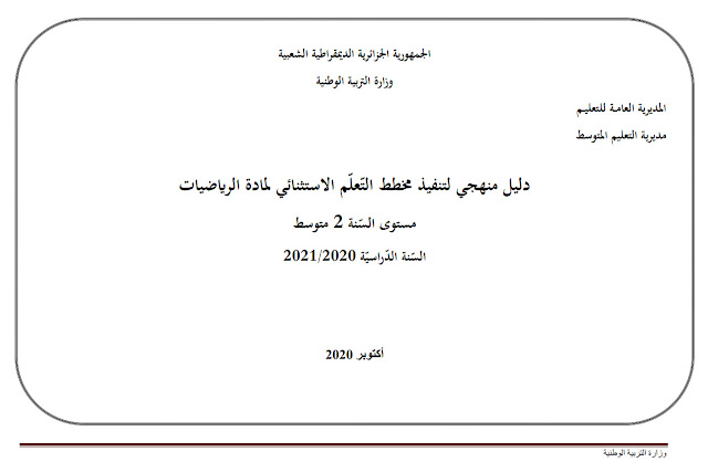 | الدليل المنهجي أكتوبر 2020 لمادة الرياضيات 1 متوسط | مدونة حلمنا العربي | سنـة أولى متوسـط | 0 | 2020-11-04 21:53 |